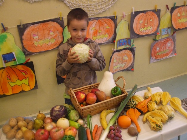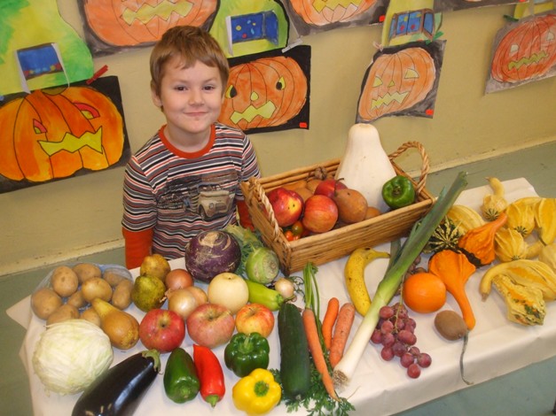 My, žiaci 1.A triedy sme to vyriešili jesennou výstavou ovocia a zeleniny.