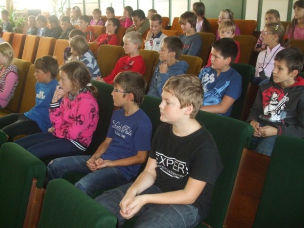 V prednáškovej sále bola formou audiovizuálnych pomôcok predstavená žiakom slnečná sústava.