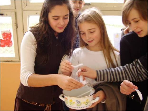 v bielych šatách s husacím krídlom a metlou "vymetali" triedy a odmetávali všetko zlo a chorobu.