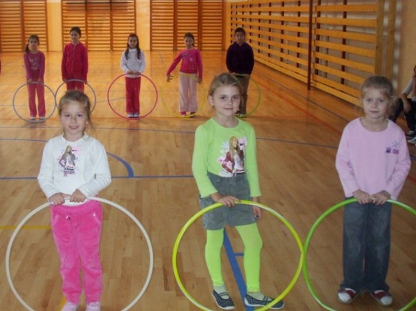 žiačky prvého a druhého ročníka na tanečnom krúžku. Užívame si tu nielen veľa pohybu, ale aj zábavy.